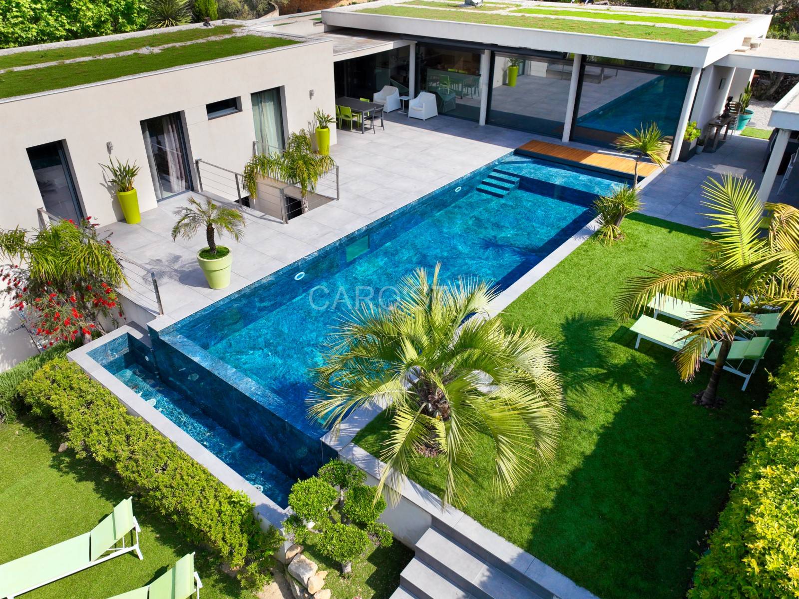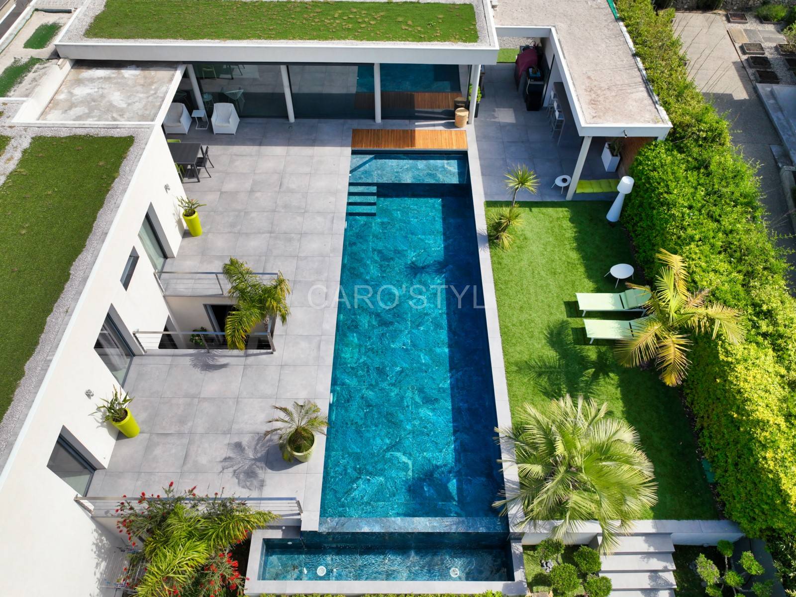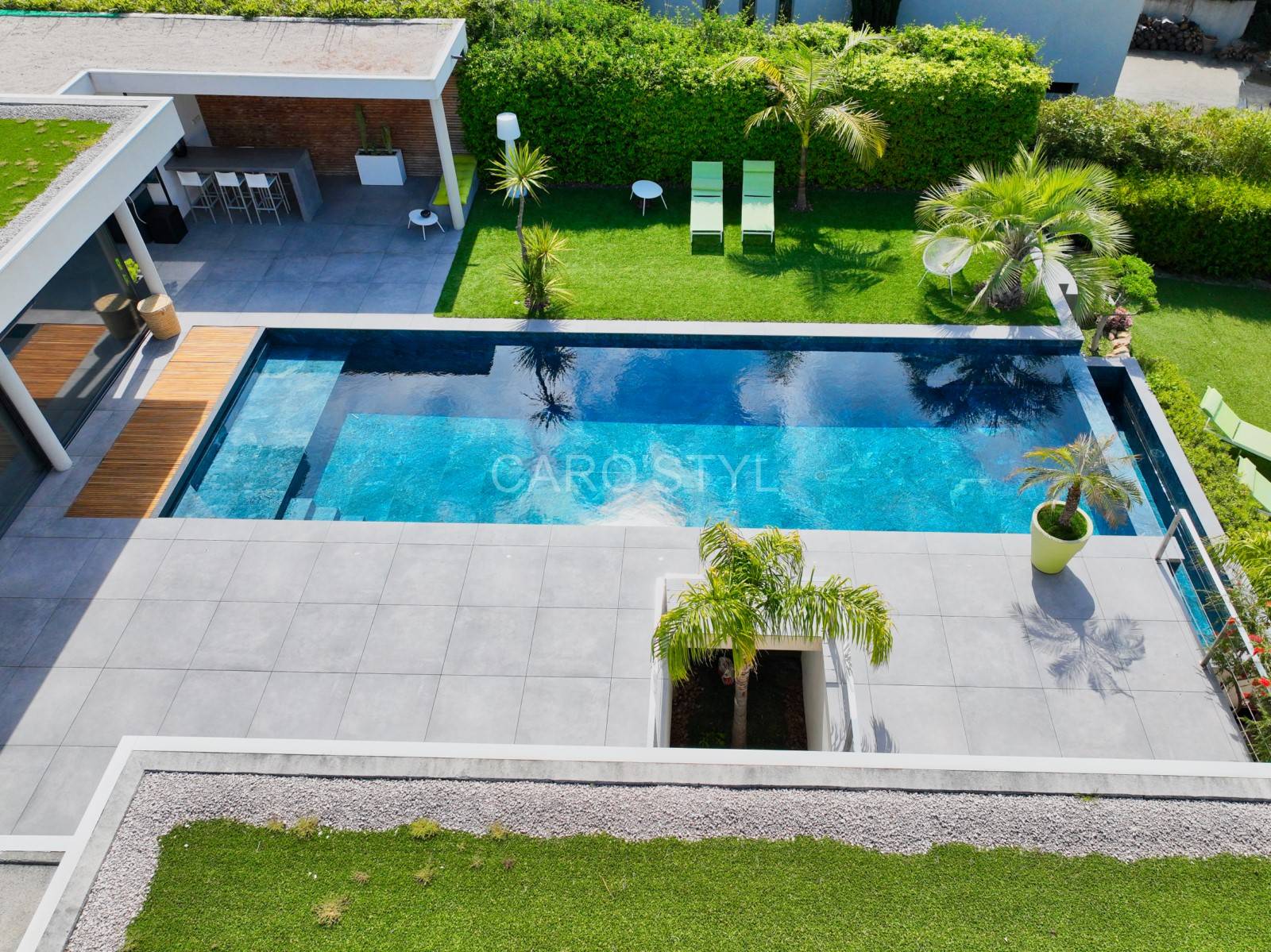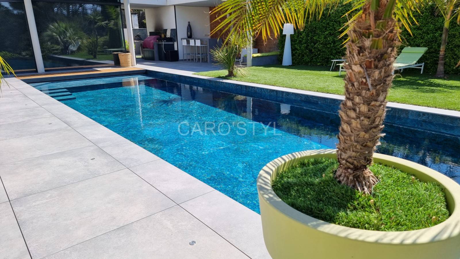 Ce grès cérame marbré bleu donnera à votre piscine un bleu turquoise, digne des îles Porquerolles. Le carrelage de piscine Abysses rendra un bassin unique, seul Caro’Styl vous le propose.