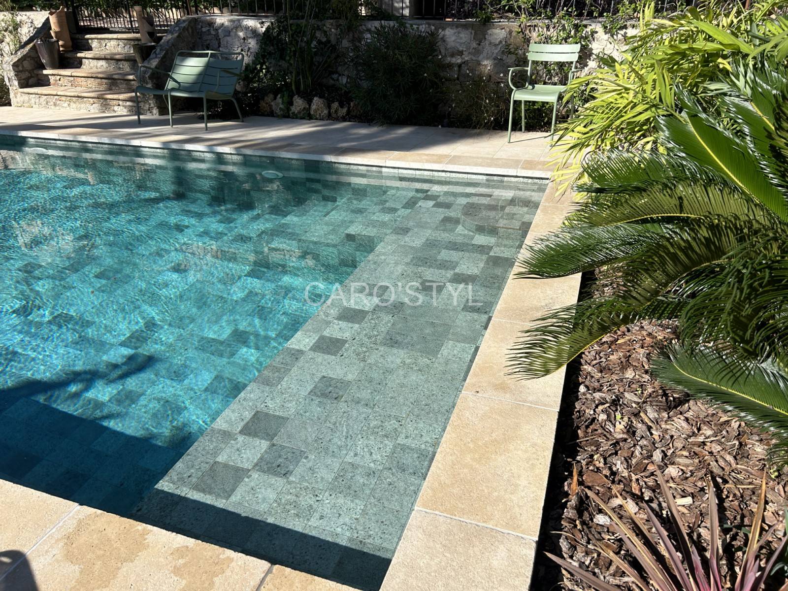 Des modèles comme Moorea, inspiré de la pierre Sukabumi, permettent d’obtenir le même effet lagon avec une résistance parfaite au gel.