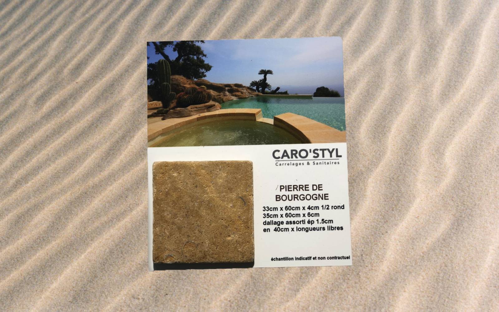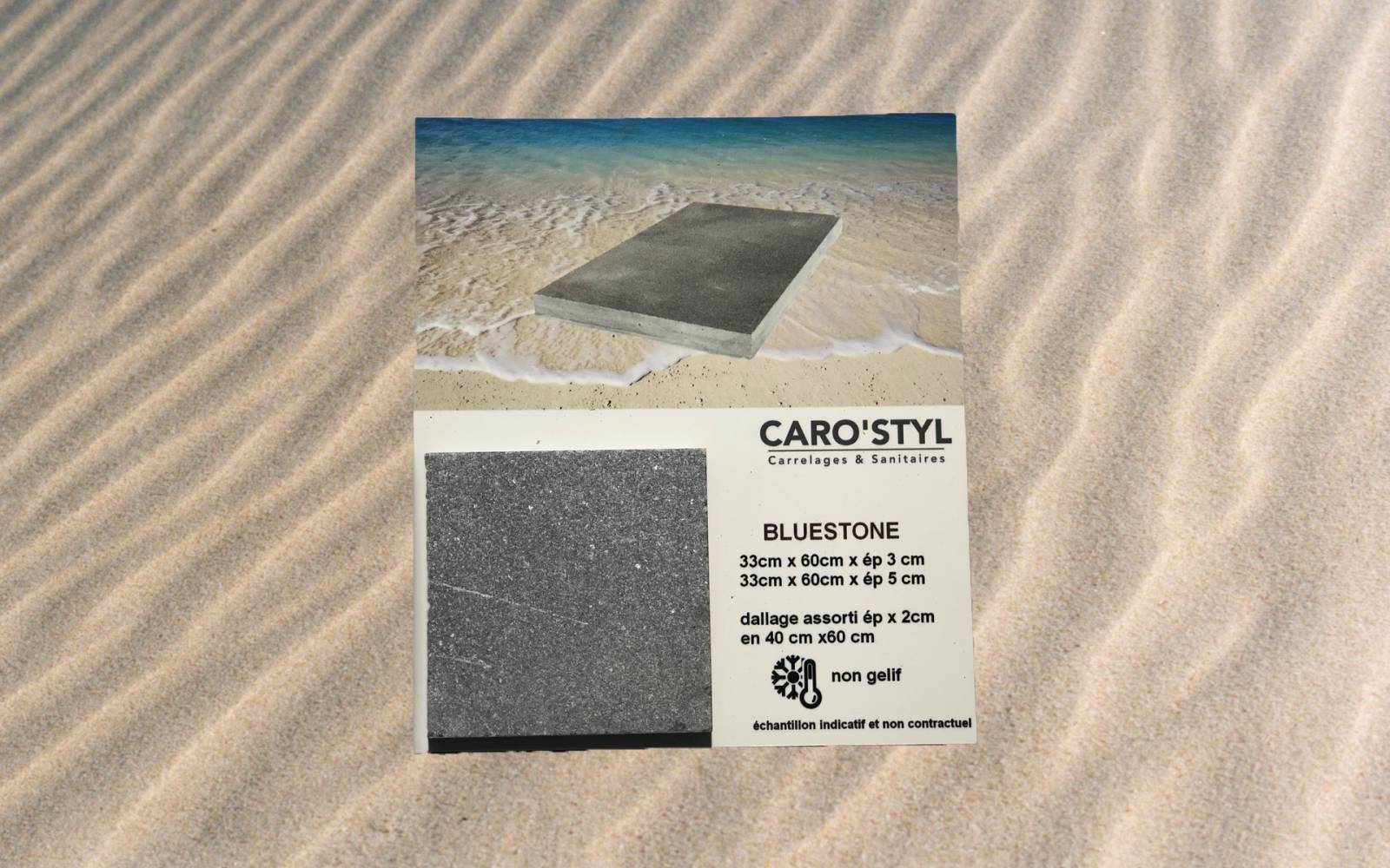Caro'styl propose un service unique de livraison à domicile de coffrets d'échantillons de carrelage extérieur pour plage et terrasse.