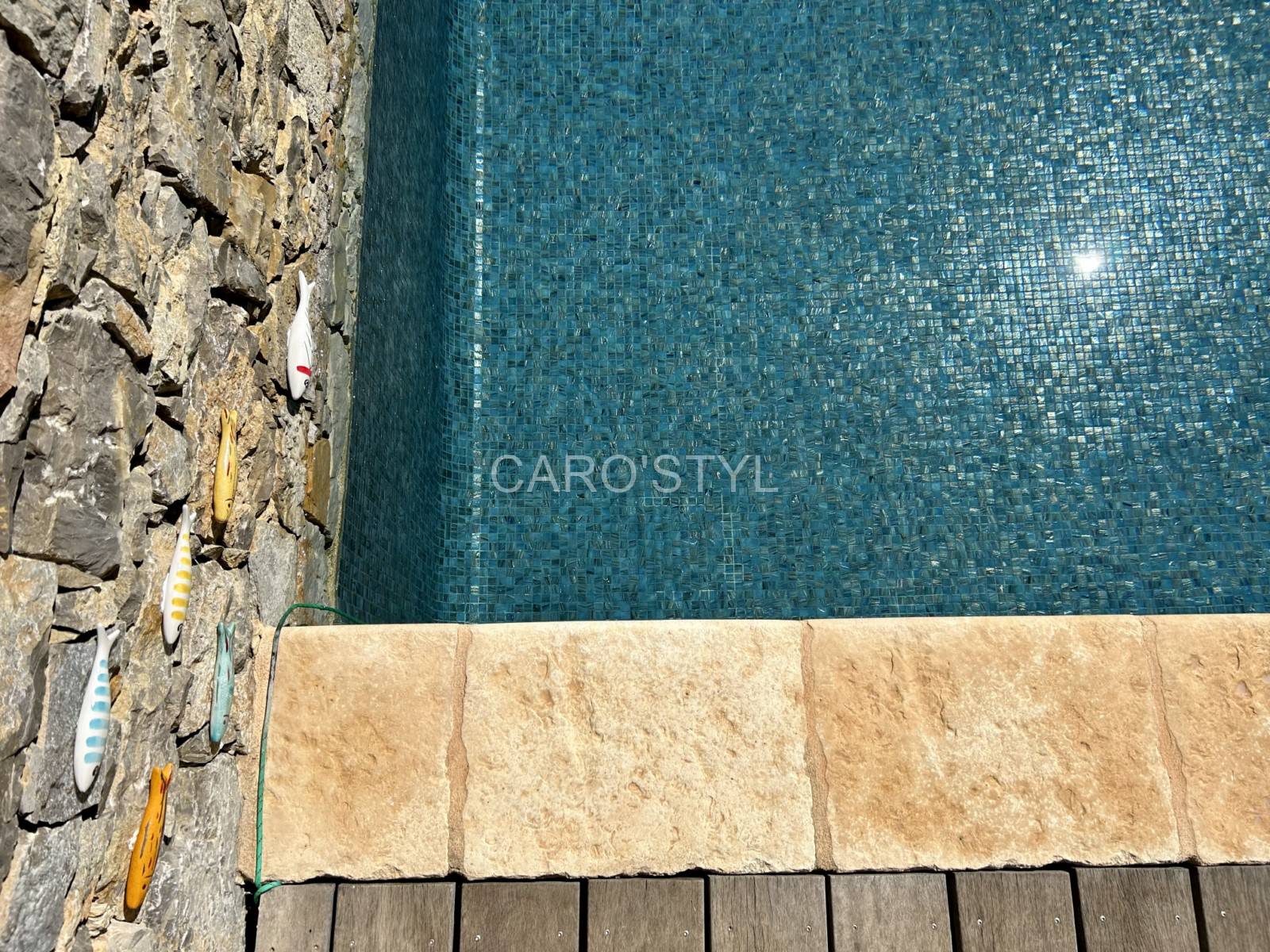 Notre équipe Caro’Styl est heureuse de vous présenter dans cet article une de nos nouveautés, la mosaïque en verre recyclé aux reflets dorés pour offrir un esthétisme naturel à votre bassin.