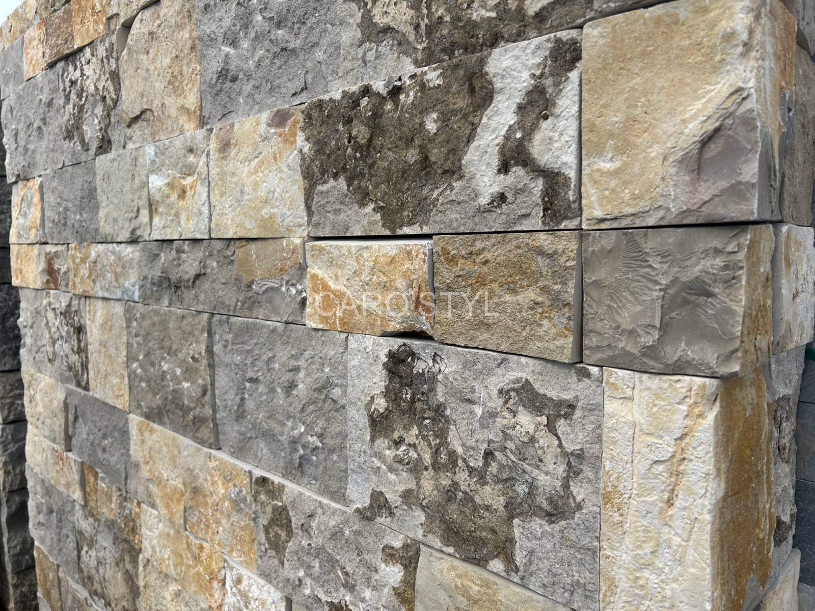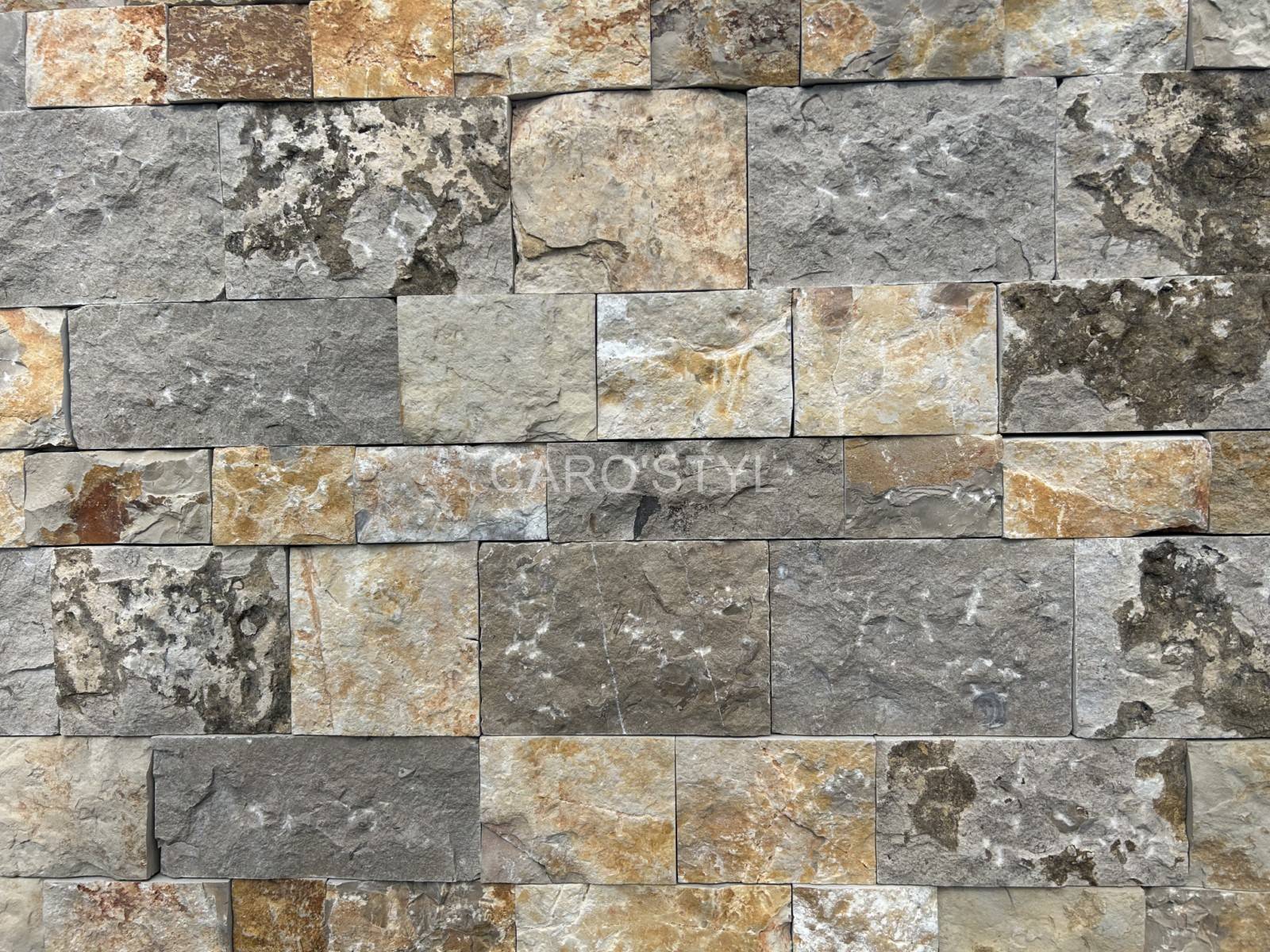 Découvrez l’élégance intemporelle de notre pierre naturelle de parement, offrant des tonalités de gris et d’ocre jaune.