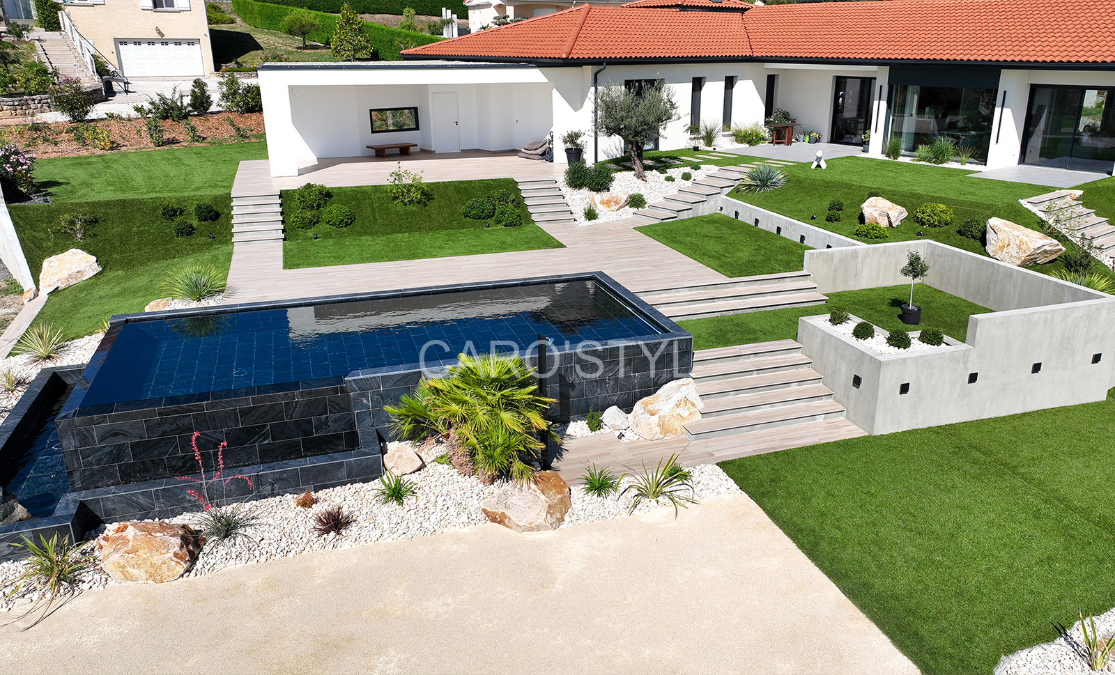 Afin de créer une harmonie parfaite entre les différents éléments extérieurs, notre équipe vous propose de découvrir les margelles Island Black d’une épaisseur de 3cm, avec un bord demi rond.