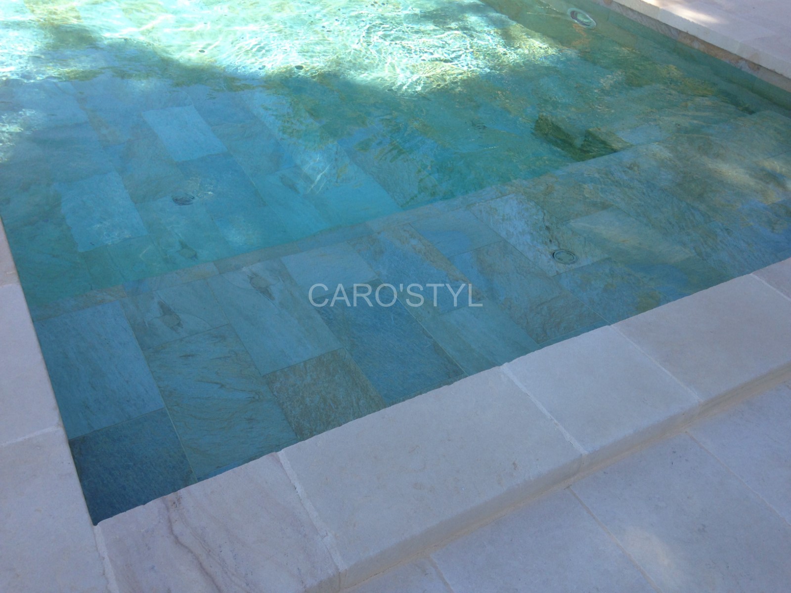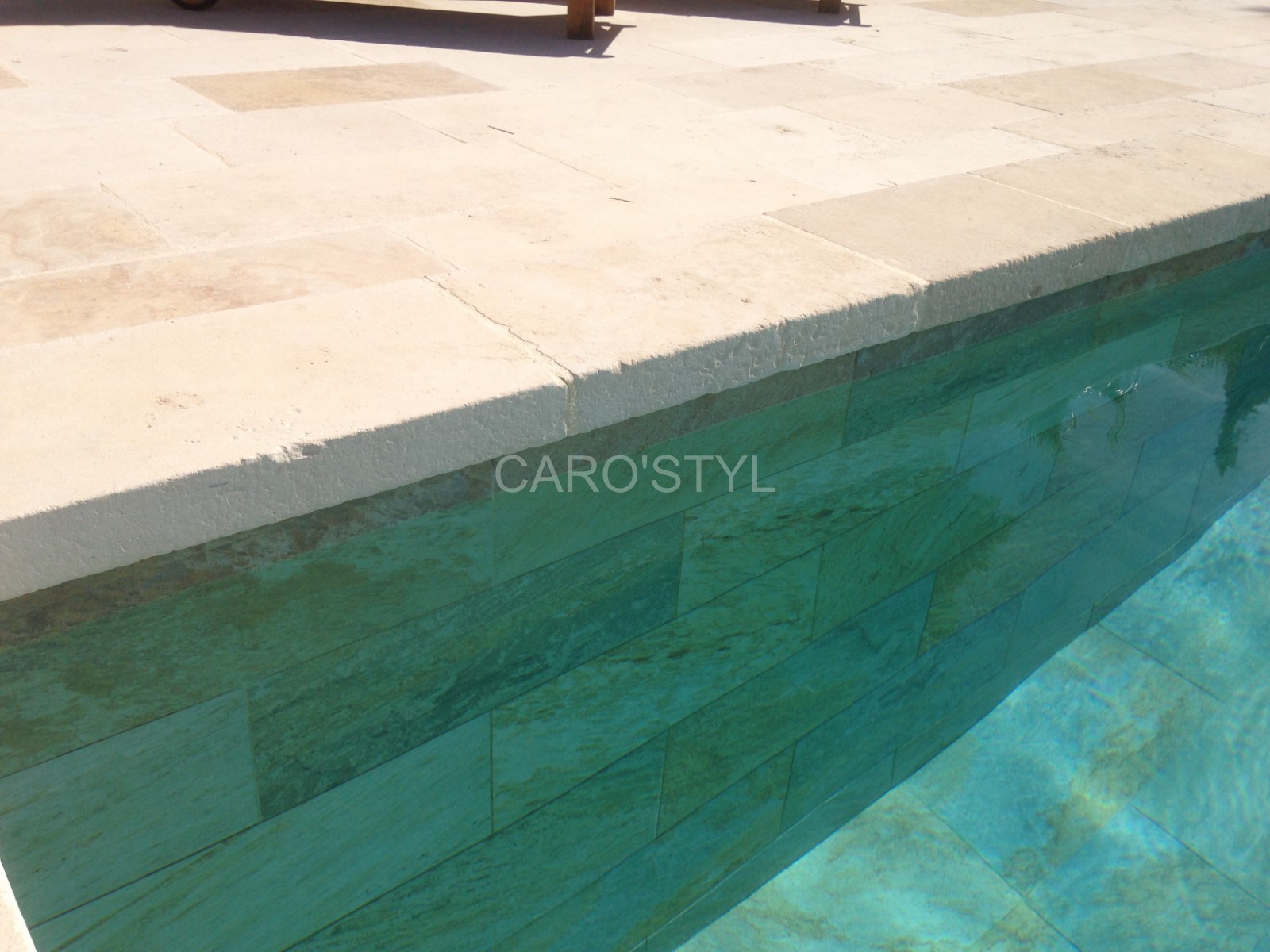 ce carrelage Golden Light donne à votre piscine une allure des plus naturelles.