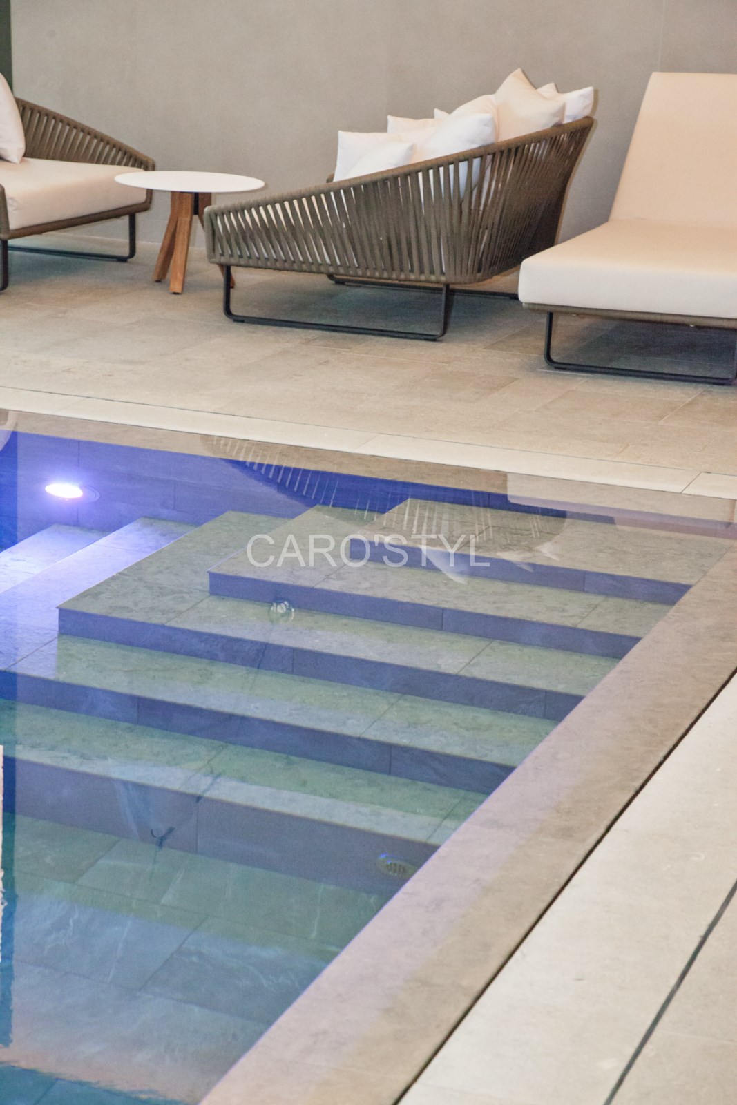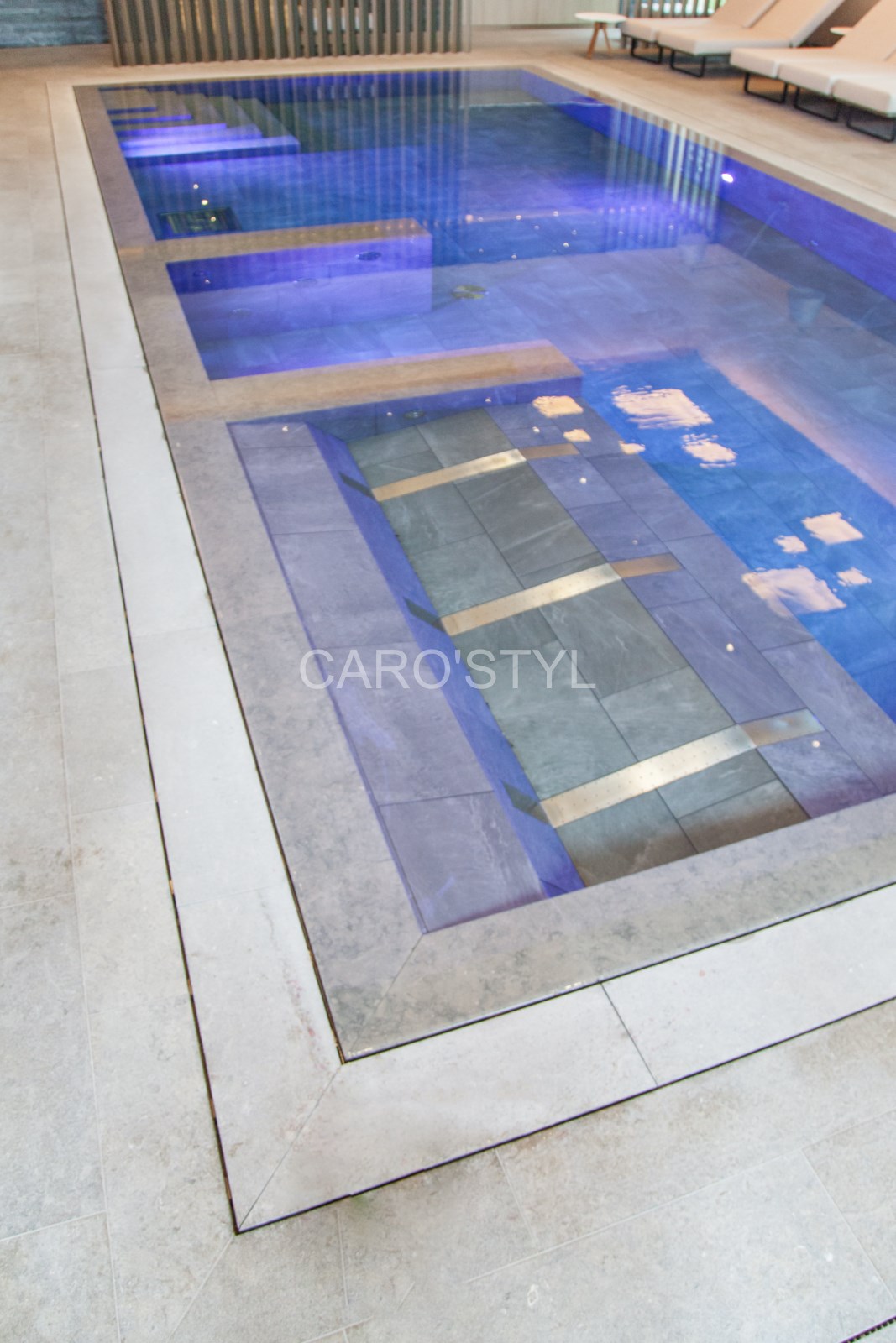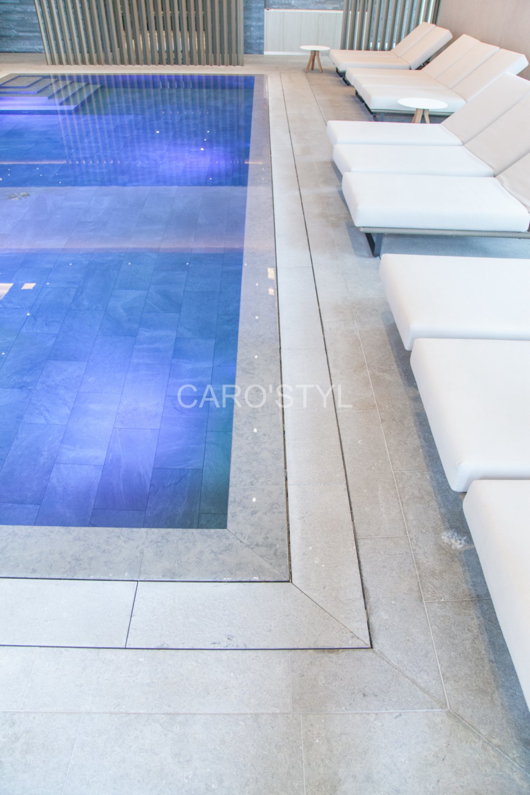 Vous souhaitez donner à votre espace baignade un aspect minéral et contemporain? Alors ce qu'il vous faut c'est la pierre de Barcelone grise.