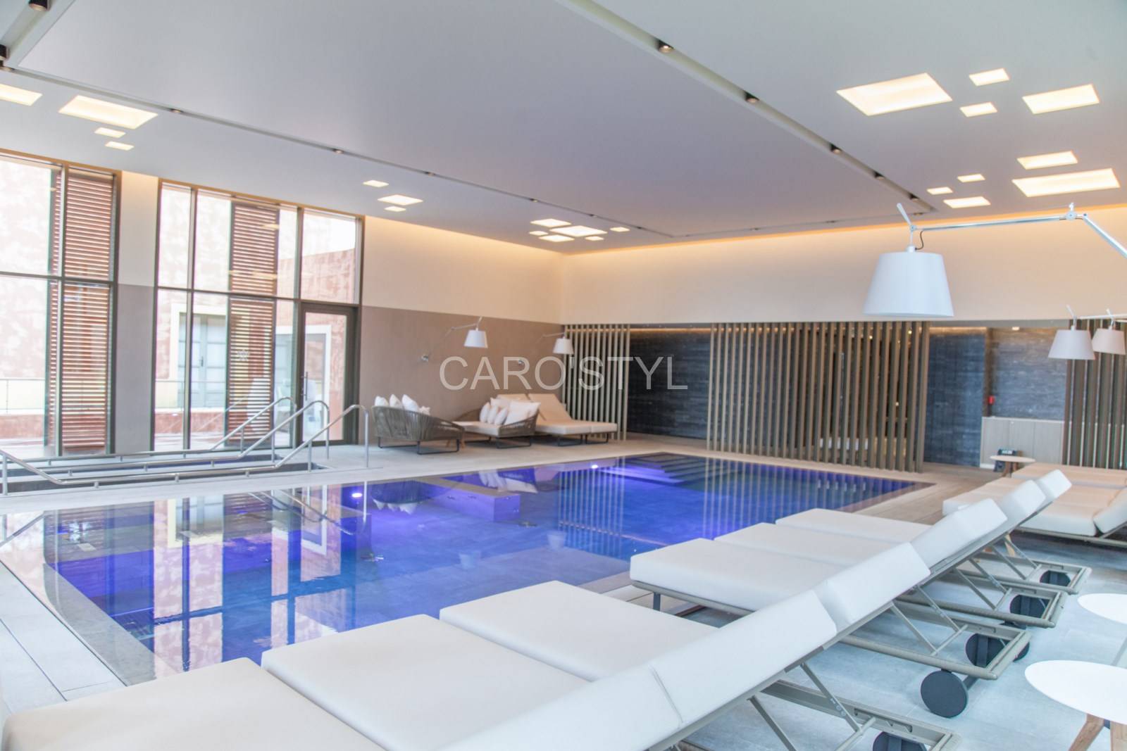 C’est une piscine aux lignes épurées, avec un débordement invisible. L’eau s’écoule dans des goulottes imperceptibles nous rappelant la sensation des vagues.