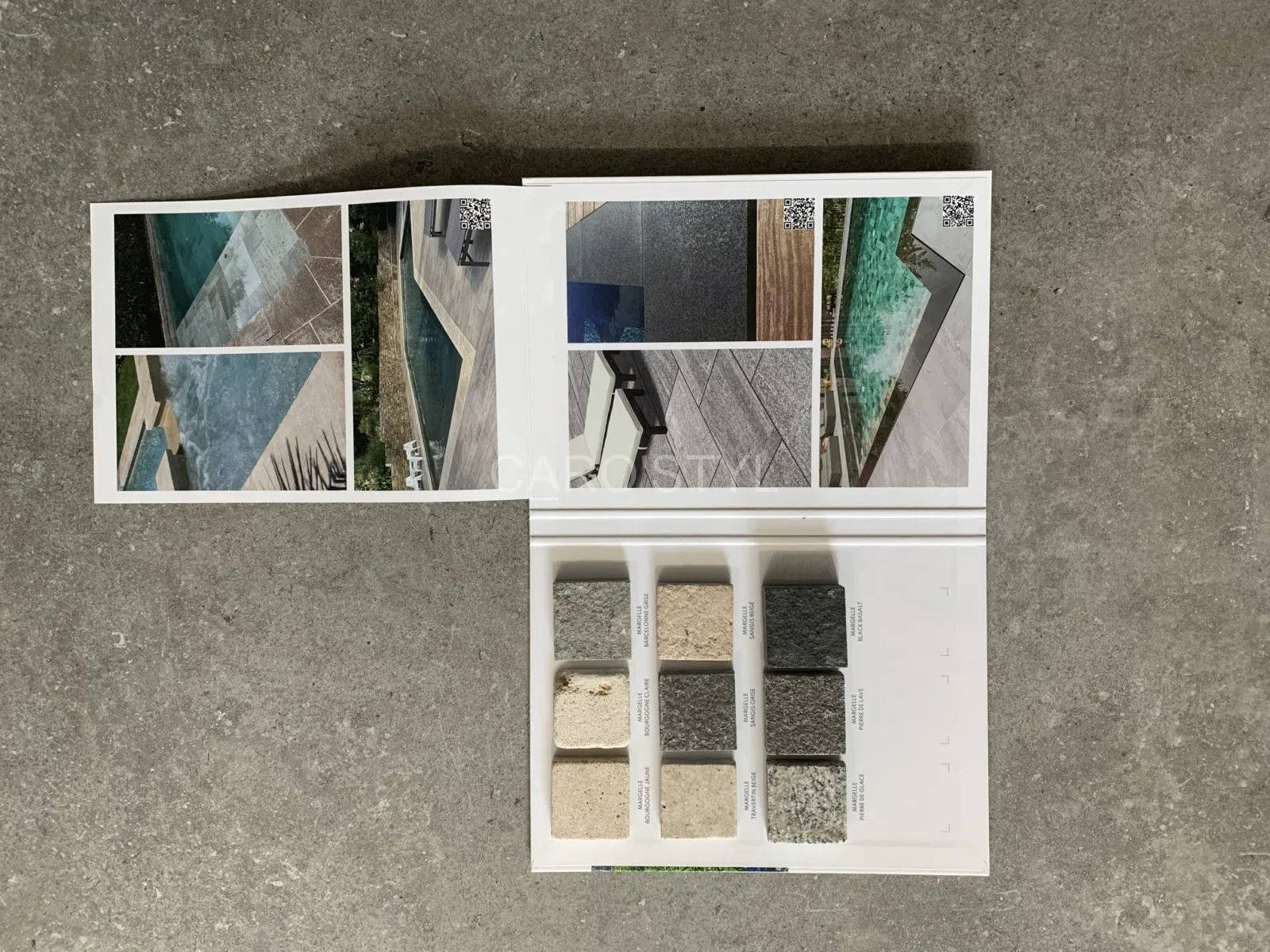 Les magasins de Carrelage Caro'styl vous propose un service unique de livraison à domicile d'échantillons de margelles de piscine de différentes couleurs.