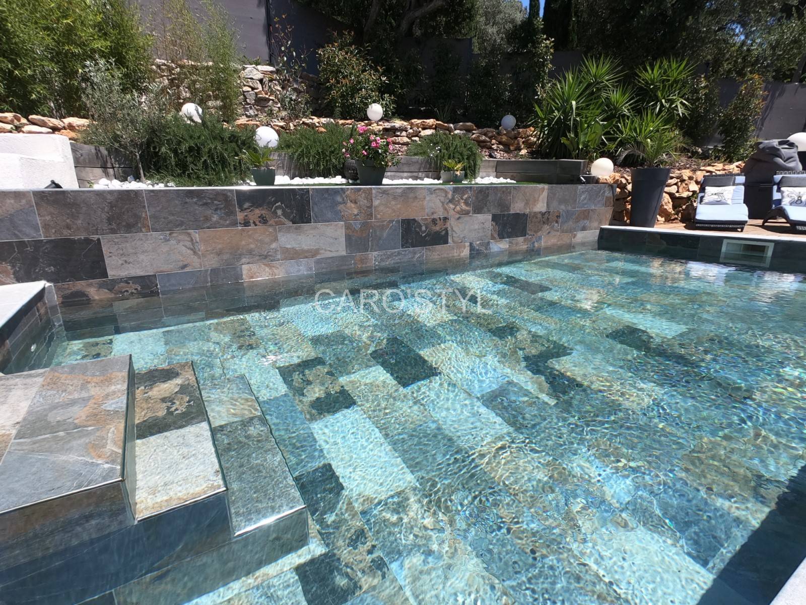 Ce type de carrelage est souvent choisi pour les piscines contemporaines, les piscines à débordement ou les projets paysagers.