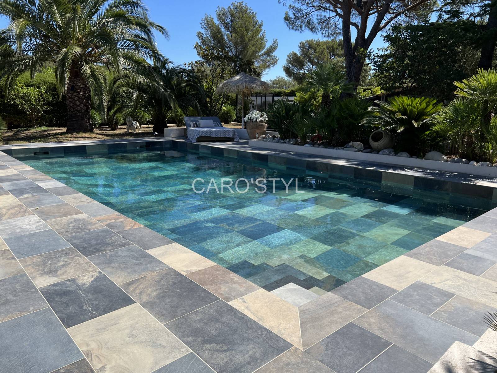 C’est cette couleur naturelle qui donne l’effet “piscine à Bali” que l’on voit souvent dans les hôtels ou les villas haut de gamme.
